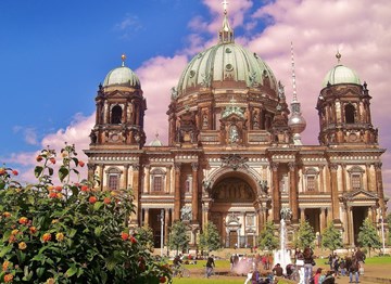 تقع كنيسة برلينر دوم في جزيرة المتاحف بوسط مدينة برلين، وقد تم بناء هذه الكنيسة البروتستانتية بين العامين 1895 و1905. وقد تعرضت هذه الكنيسة أيضًا مثل مثيلاتها من المعالم التاريخية في برلين لأضرار جسيمة خلال الحرب العالمية الثانية ليعاد ترميمها ولتأخذ شكلها الحالي.