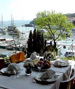 يقدم المطعم مأكولات بحرية متنوعة وطازجة، والمقبلات المتنوعة، والحلويات والمشروبات الروحية.