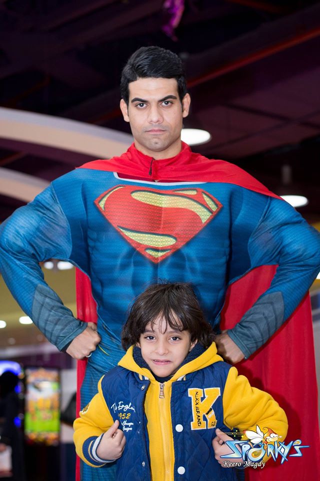 وهيتصوروا مع ابطال السيما زي باتمان وسوبر مان وبيوتي مان