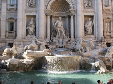 نافورة تريفي التي تسمى أيضًا نافورة الأمنيات، هي النّافورة الأكثر شهرة في روما، بناها نيكولا سالفي بناءً على أمر من البابا كليمنس ال 12 في سنة 1762، وهي مزيج رائع بين الهندسة المعمارية وفن النّحت، من ضمن الأشكال المنحوتة ممكن أن نجد إله البحر نبتون في مركز النّافورة وهو يركب عربة على شكل صَدَفة تسحبها مخلوقات بحرية بين الصّخور والمياه، يحيط بها إله الصّحة وإله الخيرات.