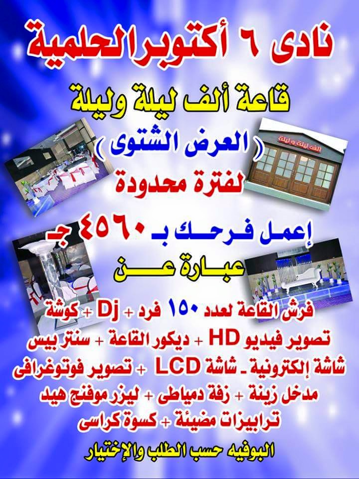| العنوان | القاهرة , مصر الجديدةداخل نادي 6 اكتوبر للقوات المسلحه - الحلميه |