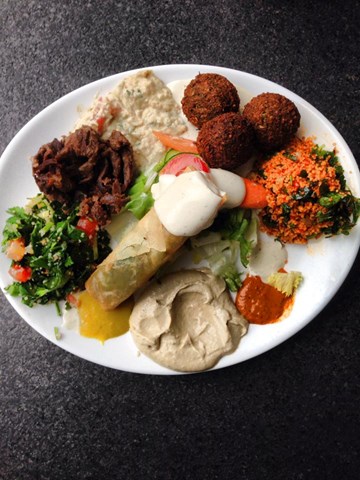 مطعم فلافل دادا يقدم المأكولات العربية الشعبية مثل الفلافل والفول والشاورما وتشكيلات لذيذة وواسعة للنباتيين.