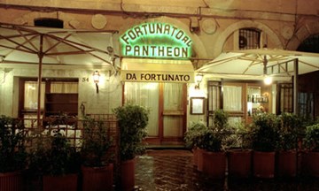 يزور مطعم فورتوناتو أل بانتيئون (Fortunato al Pantheon) العديد من الشخصيات المحلية، ولكن هذا الأمر لا يجعل المطعم مزدحمًا أبدا، فمساحته واسعة، والخدمة مهنية. تتمحور قائمة طعام المطعم حول الوجبات الإيطالية التقليدية والبسيطة مثل كرات اللحمة المفرومة المقدمة مع الأرضي شوكي التي تختلف يوميًّا. ينصح بطلب وجبة معكرونة "ألي فونغولا" التي تحوي المحار والزبدة والبقدونس، ووجبة معكرونة التاجليوليني مع فطر الترفاس الفاخر والفطر البري الطازج. ويقدم المطعم وجبات الأسماك ووجبات اللحوم المختلفة. في الفصول الدافئة يمكن الجلوس في الخارج أيضًا لتناول الطعام.