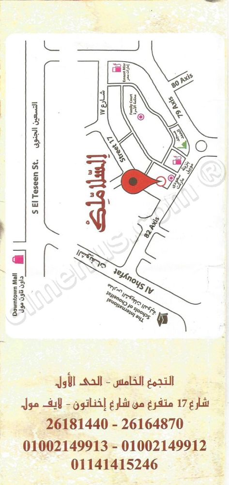 | العنوان | القاهرة , التجمع الخامسلايف مول ، بجوار سعوي ماركت ، شارع اخناتون |