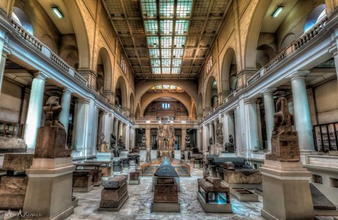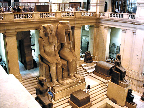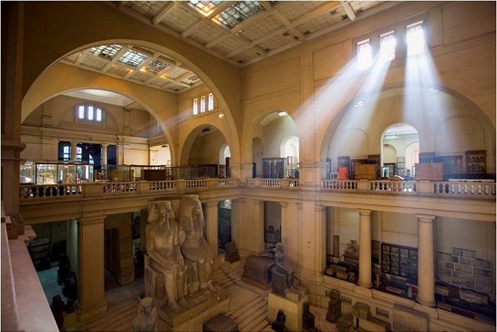المتحف المصري بالقاهرة. يحتوي على أكبر مجموعة من آثار مصر القديمة، وإن نافسه المتحف البريطاني واللوفر ومتحف متروبوليتان (نيويورك). ويقبع المتحف المصري بميدان التحرير بقلب القاهرة منذ عام 1906، يحتوي معرض المتحف على 136 ألف أثر فرعوني، بالإضافة إلى مئات الآلاف من الآثار الموجودة في مخازنه.