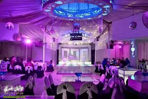 القاعة 350 كرسي ولون الفيونكة و الكاس من اختيارك بالاضافة للديجي والليزر و تصوير الفيديو وداخلة مشاعل